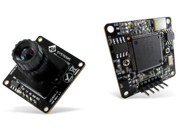 4D Systems uCAM-III (microCAM-III) Serial Camera Module is a highly integrated, low-power camera module for embedded imaging applications. The uCAM-III is the revised version of the uCAM-II. This revised module is backward compatible, interchangeable, and provides greater control of complex imaging. 4D Systems uCAM-III attaches to any host system that requires a video camera or a JPEG-compressed still camera. The uCAM-III allows image output in both RAW and JPEG format. User commands are sent using a simple serial protocol. The uCAM-III module comes with a 5-wire connector and a standard 56° angle lens. A 76° or 116° lens option is also available.Features